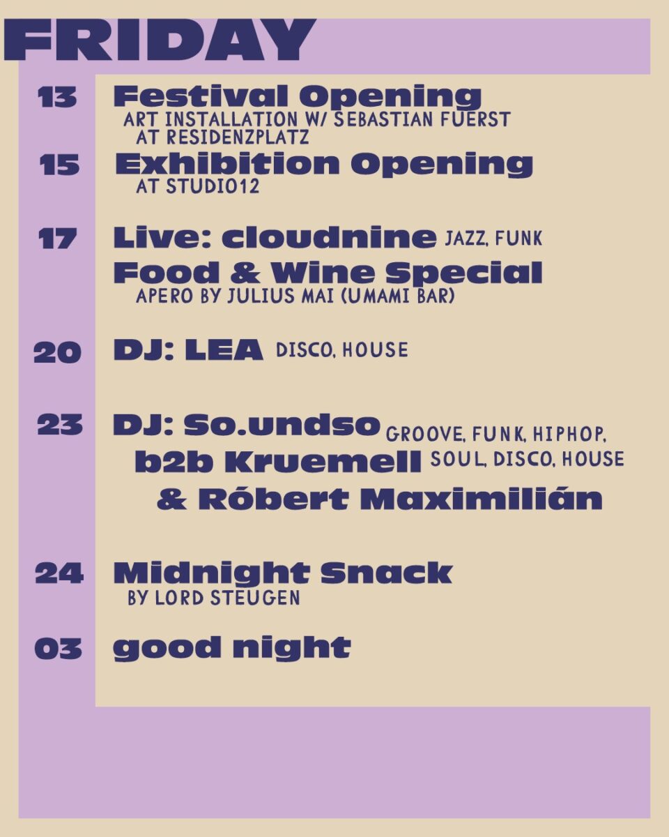 Mitternachtssnack von Lord Steugen Lord Steugen alias Eugen Lang bereitet nicht nur diesen herrlichen Mitternachtssnack zu, sondern er ist auch Mitorganisator dieses Festivals. Er ist auch der Mitbegründer der Regulate Hiphop Partys. Wir haben uns vor zwei Jahren angefreundet, als er anfing, zu uns ins Studio zu kommen. Mit seiner tiefen Liebe zur Hiphop-Musik und -Kultur fing er schnell an, regelmäßig bei uns aufzulegen und uns mit Hiphop, R'n'B, Amapiano & Future Beats zu beglücken.