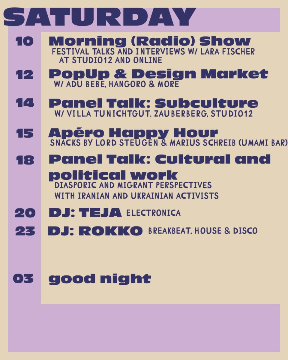 Adrian Tadić und Finn Kirberg sind die Gründer von studio12. Angefangen als Cafébar hat sich das Studio zu einem Zentrum für Kreative und Künstler*innen der Stadt entwickelt, um zusammenzuarbeiten und gemeinsam zu wachsen. Adrian und Finn setzen sich leidenschaftlich für die Förderung von Kultur und die Schaffung bedeutungsvoller Verbindungen zwischen Menschen ein. Bei studio12 kreieren sie gemeinsam eine Vielzahl von Veranstaltungen, darunter Konzerte, DJ-Sessions, Literaturabende, Ausstellungen, Diskussionen und mehr. Vor den studio12 und eines ihrer ersten und prägendsten Projekte war „polyphon soundsystem“, mit dem sie Veranstaltungen in Off-Locations organisiert haben.